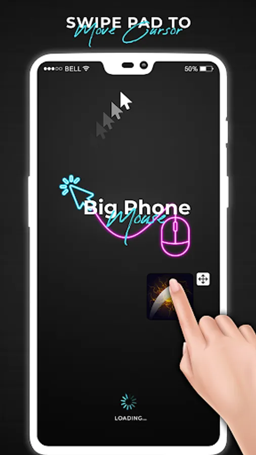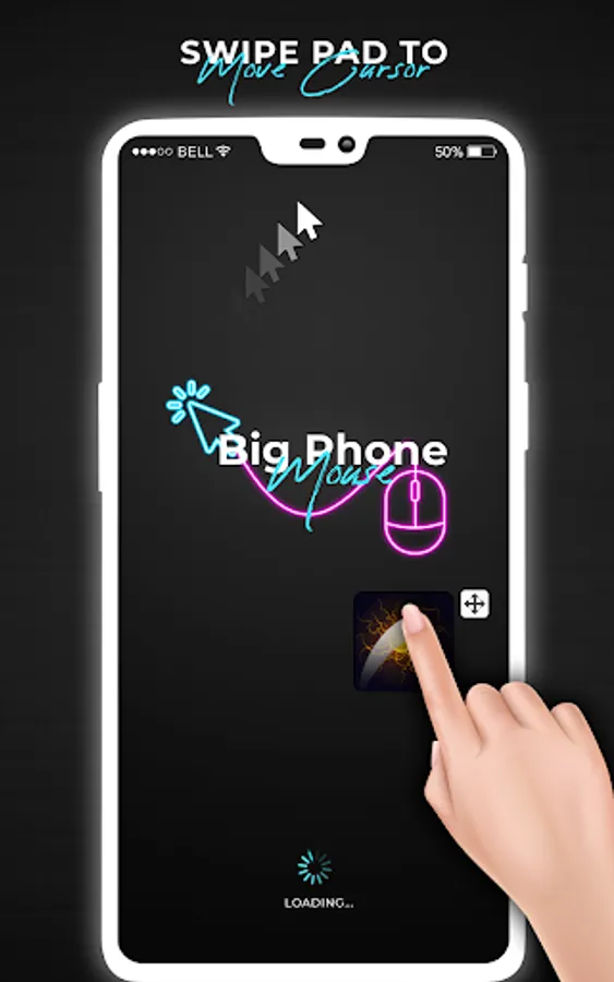 We present mobile mouse cursor mobile for Android mobile phones with mouse cursor pointer on screen. This Mobile Cursor Touchpad takes a small portion of the screen at the bottom and shows you a computer-like mouse cursor pointer. This app offers single, double and long click functionality with mouse pointer for large phones and smartphone screens. You can swipe on an edge of the screen in this app.