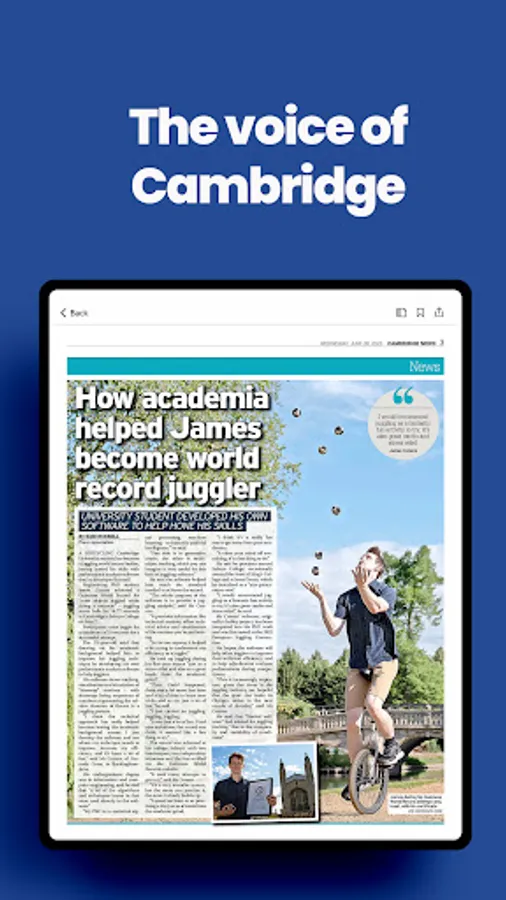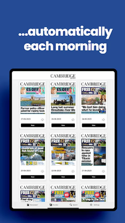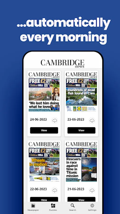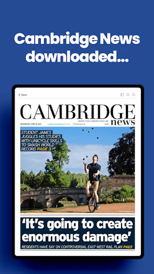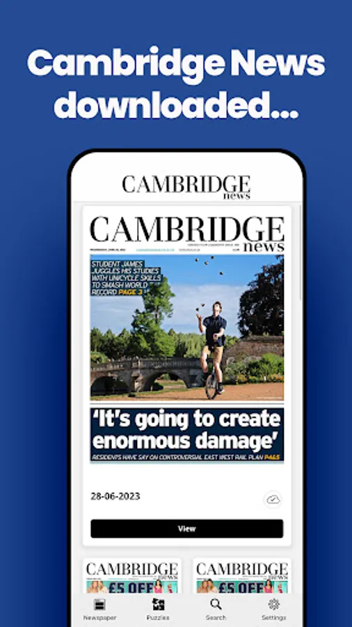 All of your news, sport, opinions and supplements from the Cambridge News on the go, daily. Each day's paper is automatically downloaded to your device overnight.