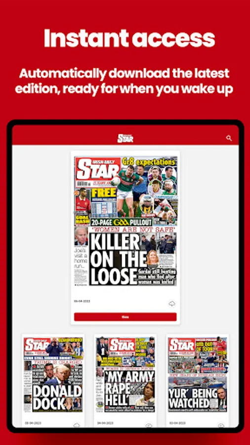 The Irish Daily Star provides access to all editions of the newspaper app on a one week or one month subscription.
