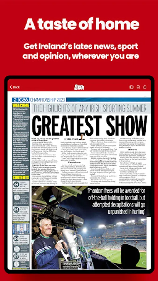 The Irish Daily Star newspaper E-edition brings you the latest Irish and international stories, entertainment and local Irish Sport on your device, published in exceptional clarity, with an incredible touch screen experience allowing you to swipe through the paper. The E-edition also comes with the additional benefit of a live news feed from irishstar.com, our dedicated site for the Voice of Irish America.