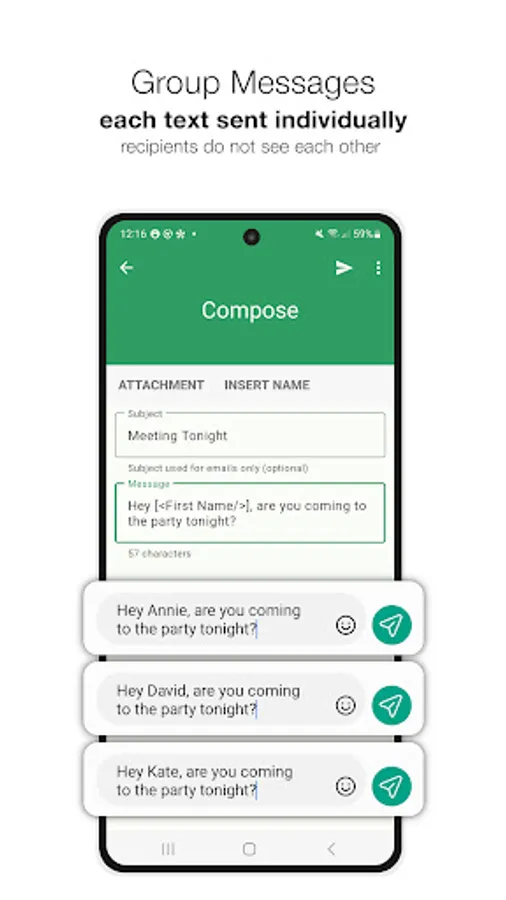 Reach is your go-to business communication tool for interacting with larger groups all at once. It eliminates the hassle of exposing recipient lists, unlike your regular text app. Moreover, Reach enables you to personalize each business message, adding that extra touch.