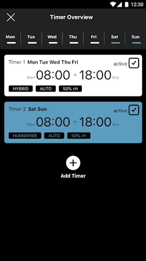 ◦ Lock mode (physical button of the unit can be blocked by the app, this is good if there are pets or children in the household)