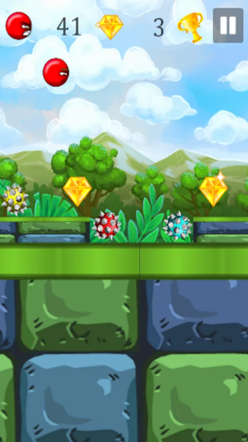 The jump game takes coins by the way without touching the tip ball that results in game over, take heart that will give the player invincible for a while, the more heart take longer will his unbeaten record, the game has scores to the player view his record and to share with friends.