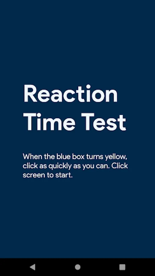 - When the blue screen turns to yellow tap to screen and wait your reaction time / reaction score.