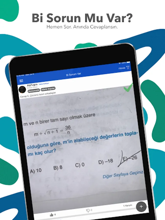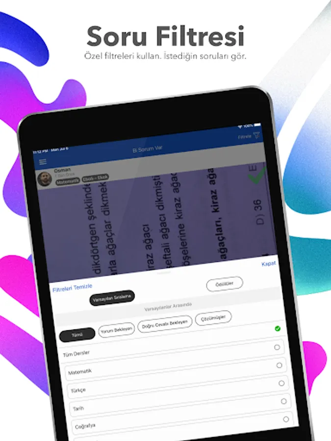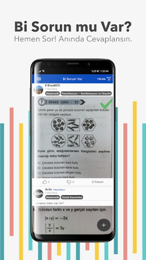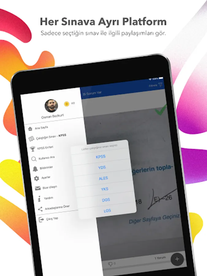 For candidates preparing for KPSS, YKS, LGS, ALES, DGS and YDS, it is now very easy to solve the exam questions and reach the solution by going through different ways. You can take a photo of the problem you have in mind and share it, and you can exchange information with other candidates on the solutions and answers.