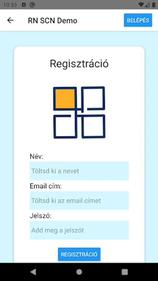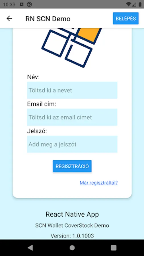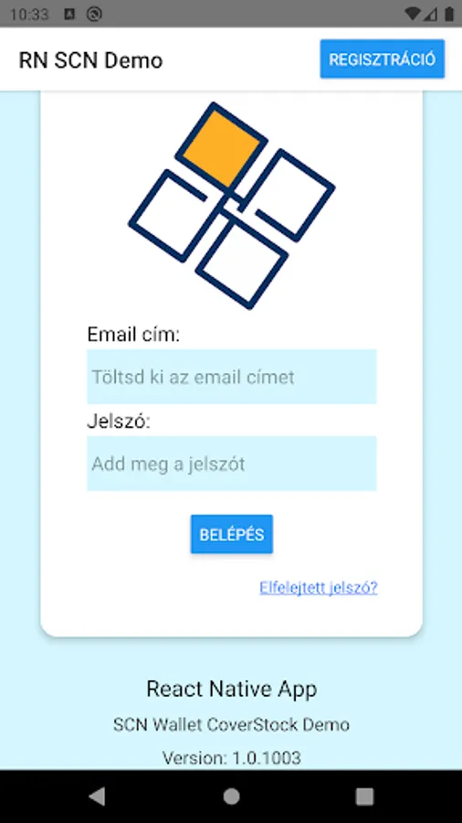 React Native SCN Demo Login and Registration pages, a React Native development demonstration App.