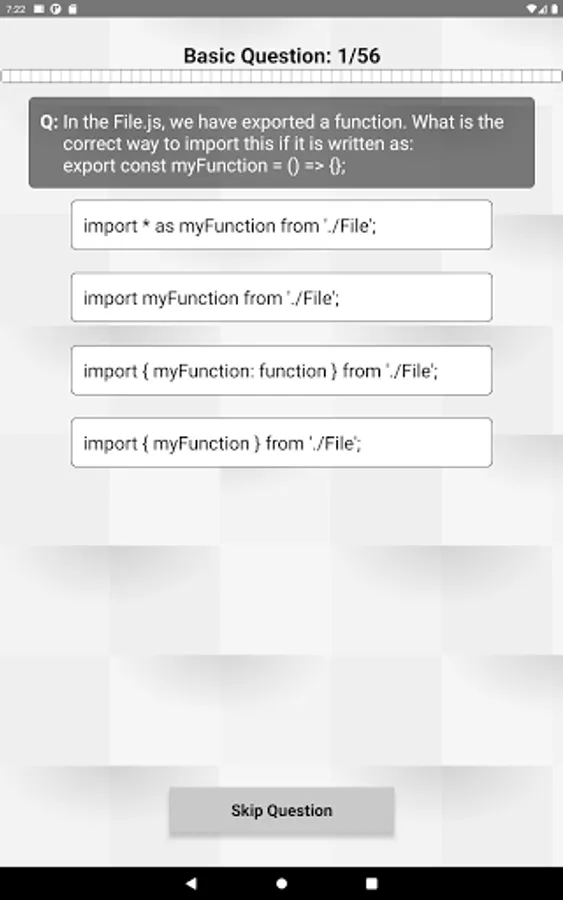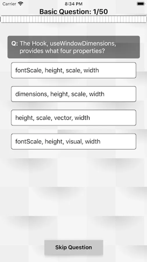 This app was created to help Junior and Mid-Level developers test their knowledge of React Native basics and essential JavaScript to help them prepare for working in the industry.