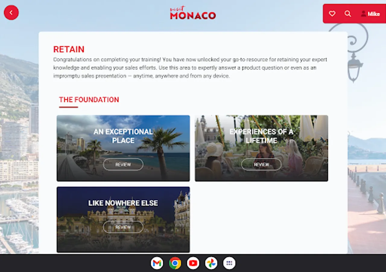 Being a Monaco Expert on the go is easy. Content is fresh and updated regularly, and progress through training and other favorited areas of the companion are seamlessly integrated between web and app platforms.