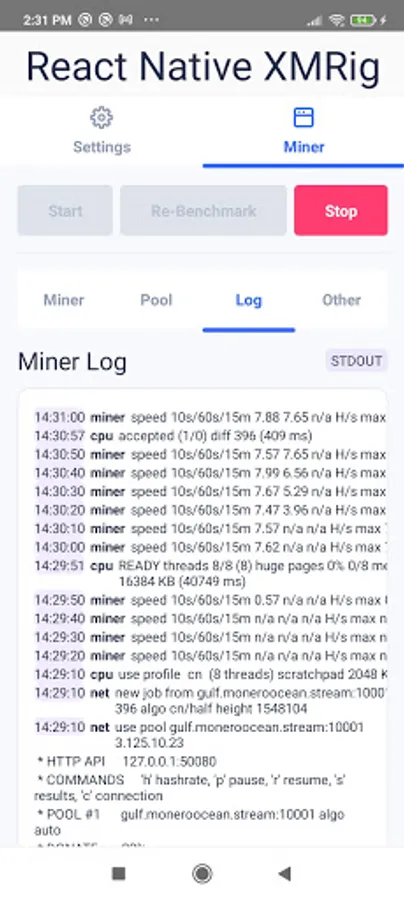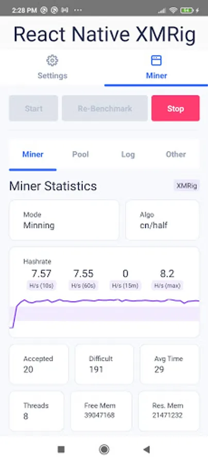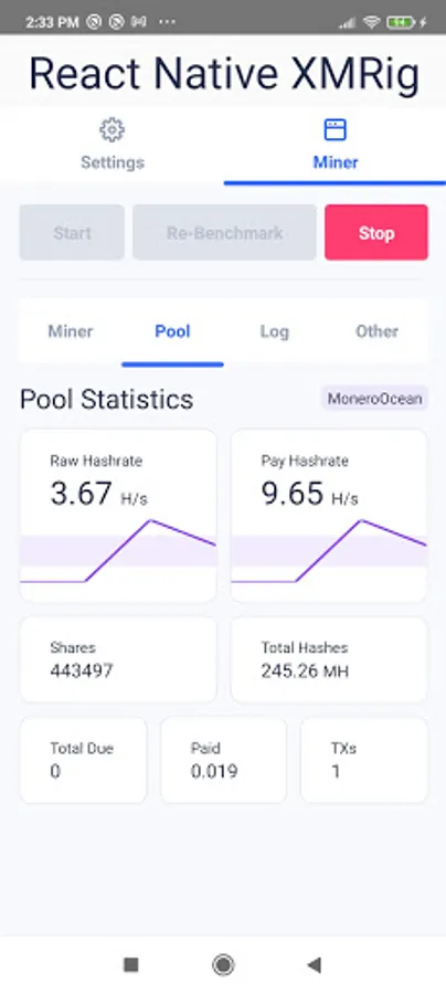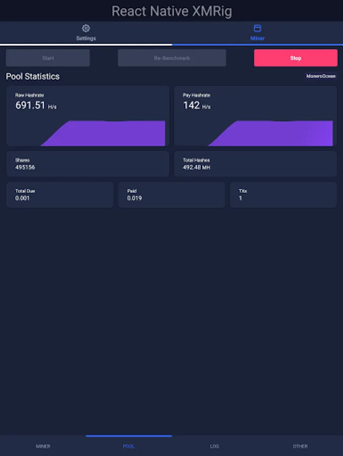 React Native App that uses optimized version of XMRig (XMR Monero Minner) to run on mobile. Using MoneroOcean auto switching algo to mine the most profit coin and payout as XMR (Monero).
