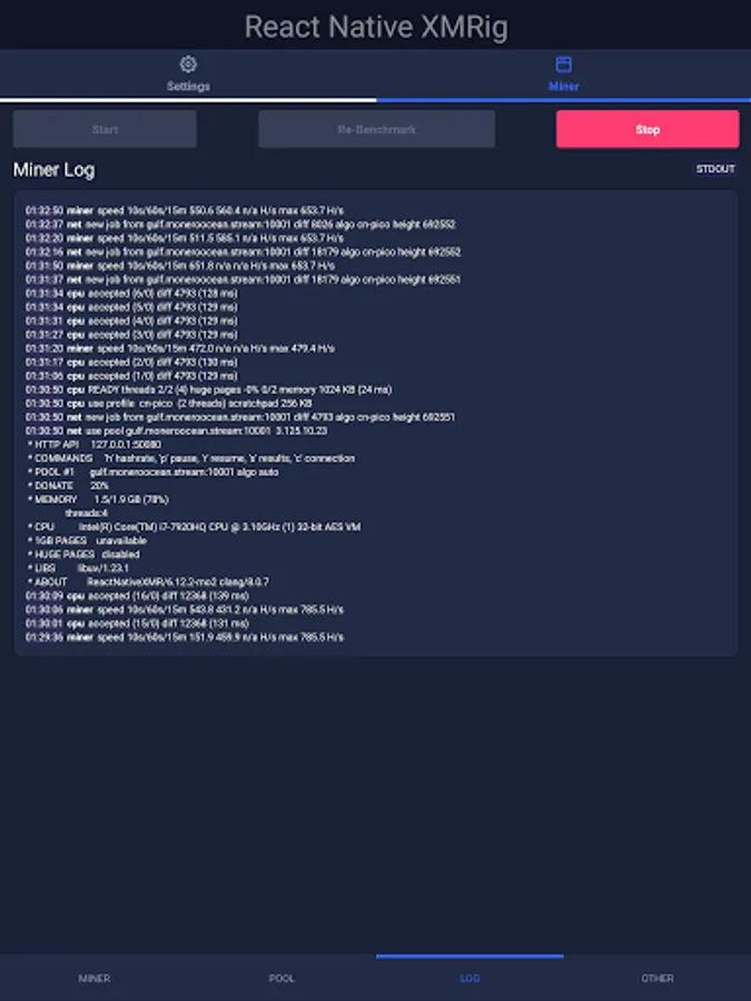 The project is released as Open Source on Github - https://github.com/garrylachman/react-native-xmrig