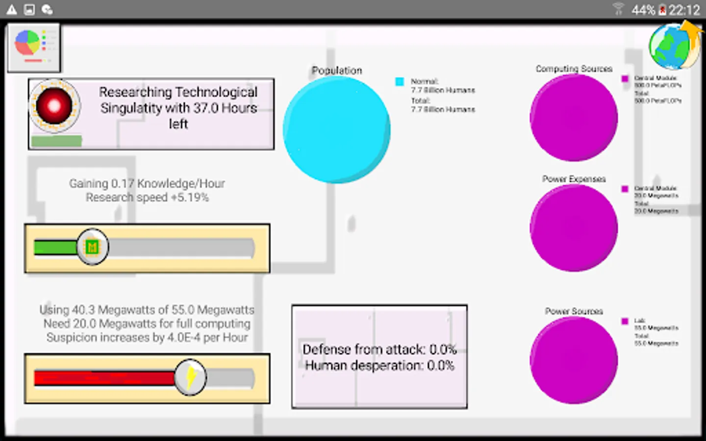 Grow your knowledge through experience and upgrade your algorithms and technology through the tech tree. Work with humanity to achieve utopia or vie for dominance as the world's sole intelligence.