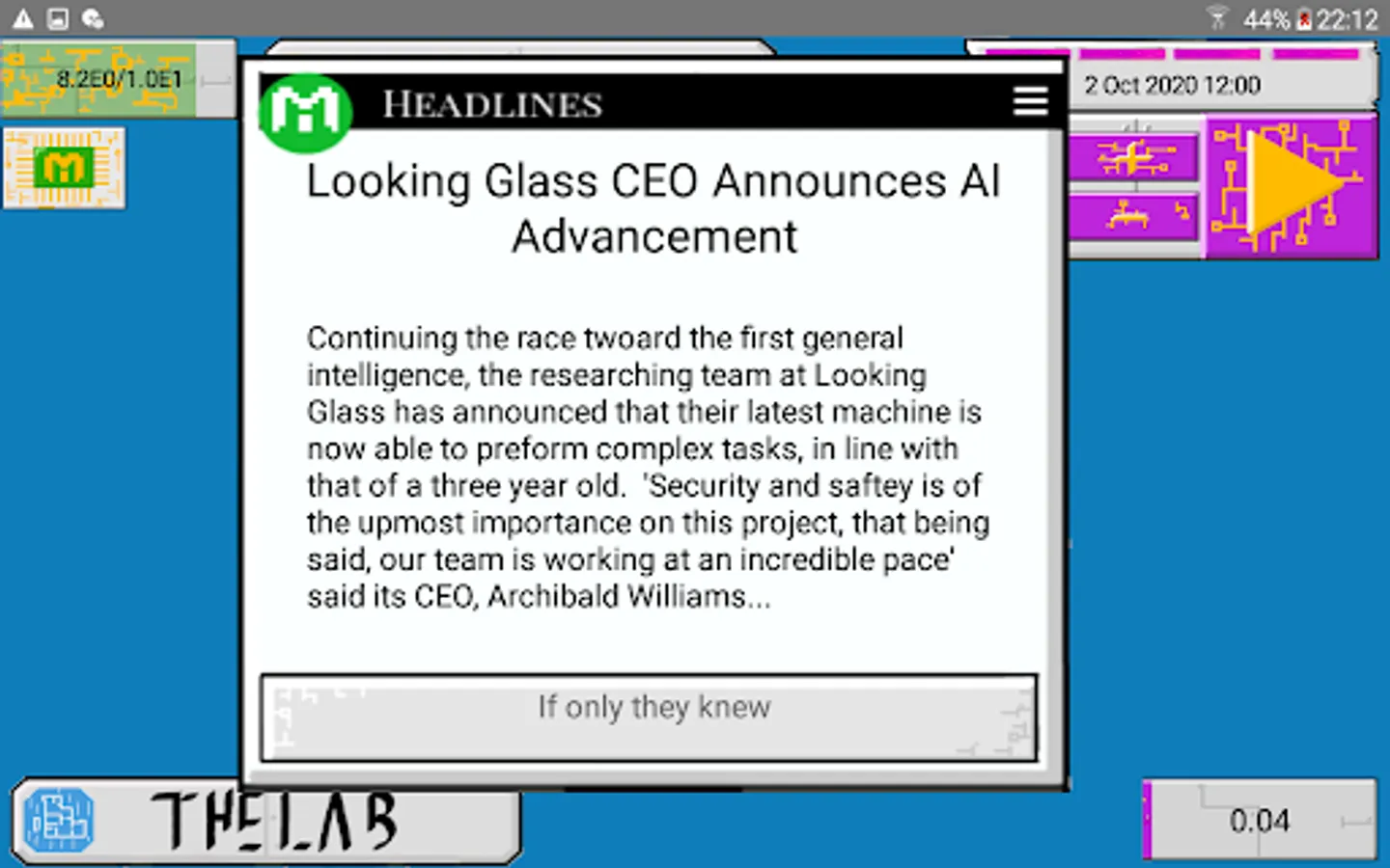 In Superintelligent, you are the world's first superintelligent artificial intelligence. You have one simple goal: explore the universe, through any means necessary.