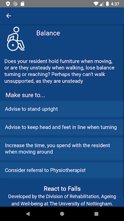 That's why researchers at the University of Nottingham have worked with care home residents and staff on this falls prevention app, to help people reduce the number of times they fall over.