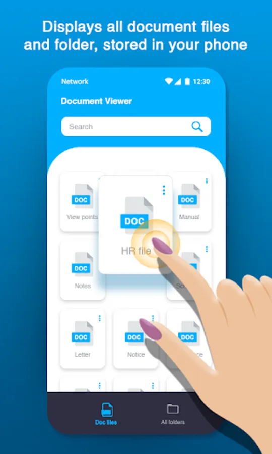 Become a good reader & start reading doc files with doc viewer for android. The Doc viewer app will help you to view Docx file or to read docs file on the phone with an amazing file manager along. This file manager will automatically fetch all document files & display them according to format separated by their categories for you to easily select the desired format to read & view doc or Docx file.