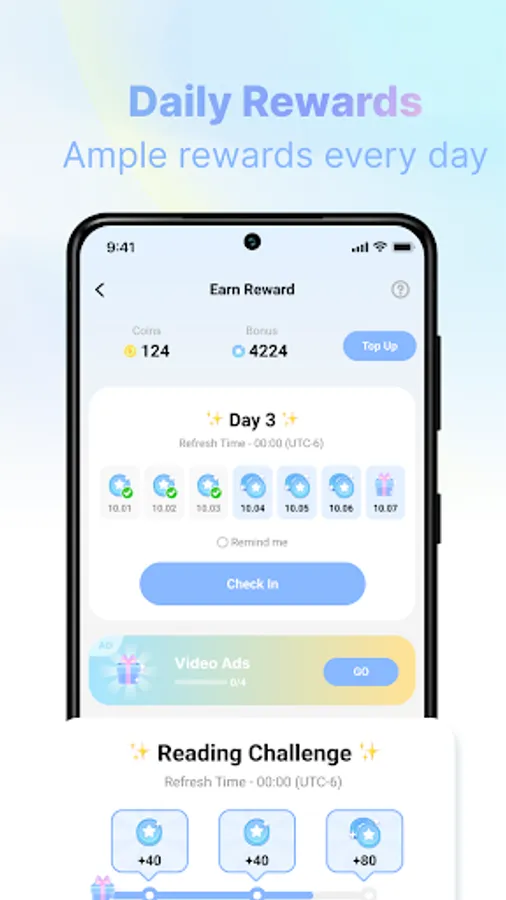 Favstory's Reward Center offers great bonuses every day, where you'll find a variety of simple tasks that you can complete to earn enough coins and bonuses to make your reading happen. The more you read, the more bonuses you will receive. Take our reading challenge now and start reading! Likewise, you can earn daily rewards by logging in or participate in our regular recharge events. We'll be opening up more ways to unlock bonuses in the future, so don't miss out!