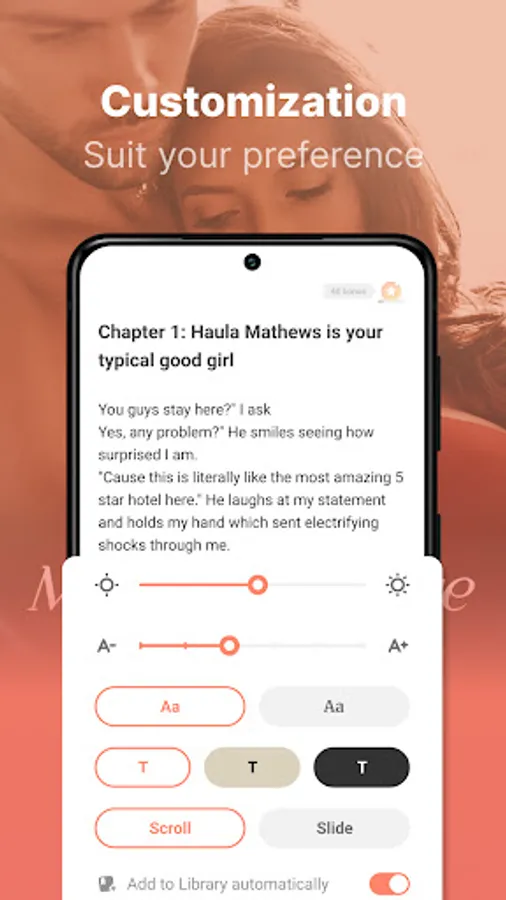 Readlib features a personalized reading experience with powerful book recommendation mechanisms that suggest books tailored to your preferences. Our user-friendly application also features personalized reading settings, allowing readers to adjust the font, background, light and page turning mode according to their preferences. The reading history is automatically synced to your bookshelf, enabling you to resume reading from any device.