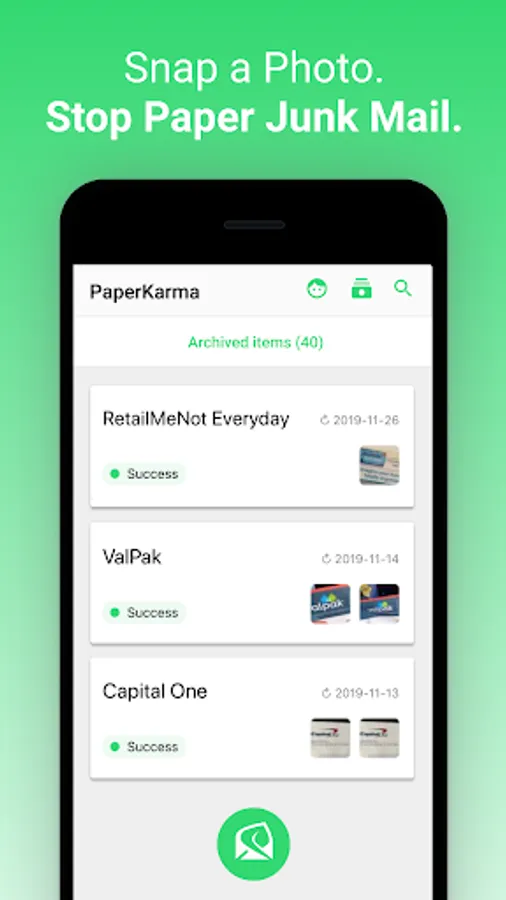 Empty your recycling bin for good(!) and stop unsolicited postal snail mail with the PaperKarma stop junk mail app.