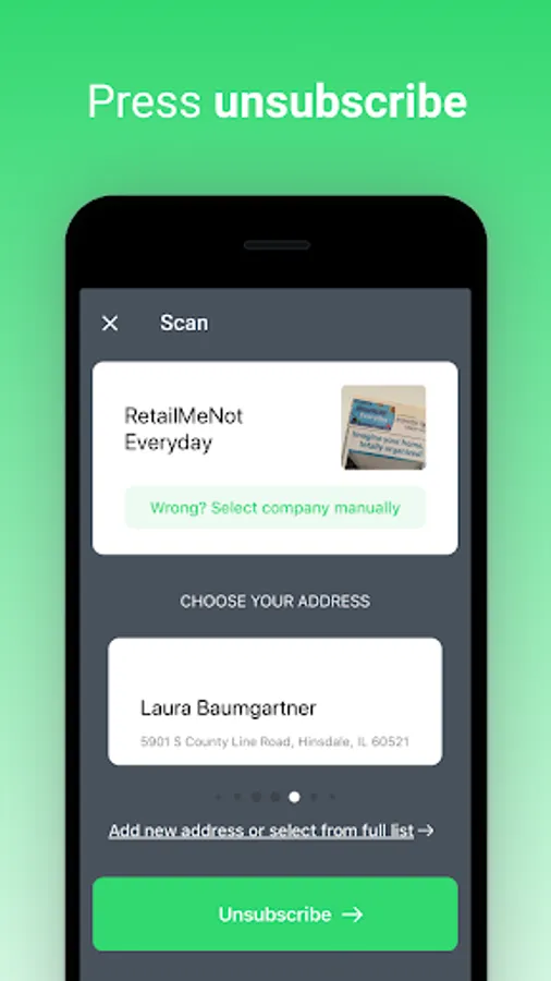 Simply snap a picture to unsubscribe from bulky catalogs, credit card offers and unwanted paper mail delivered to your home address. Reduce clutter, save time and simplify your life!