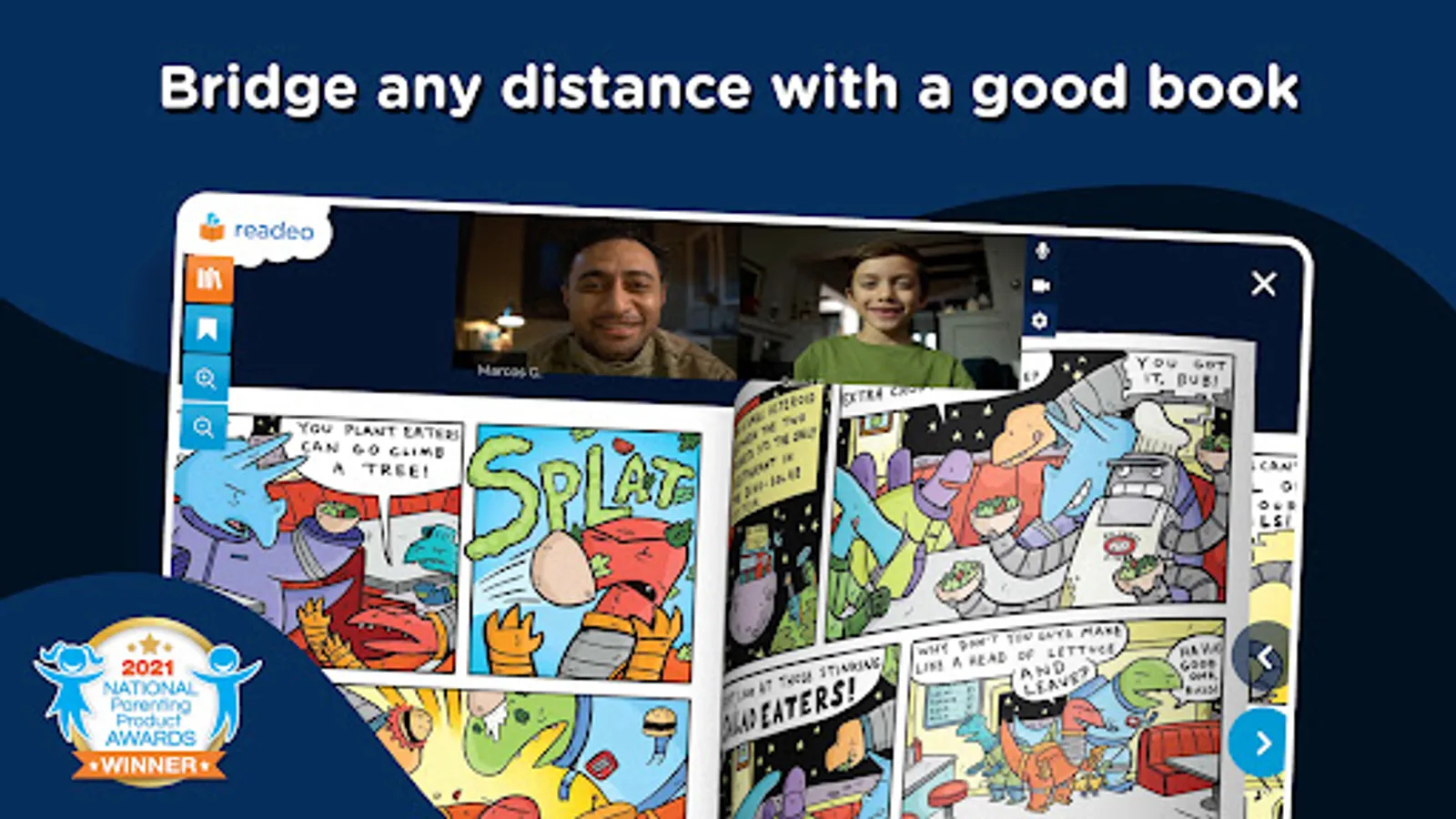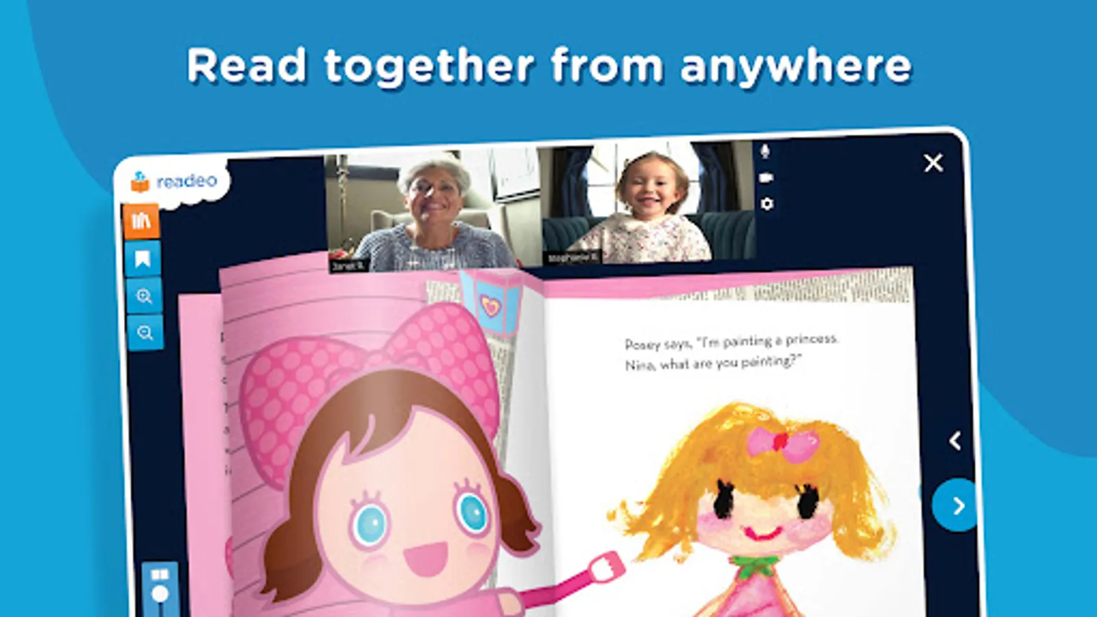 Readeo is a two-way interactive virtual storytime app that gives children and adults the ability to read the same books together online, whether you’re in the same room or thousands of miles apart. Readeo’s patented reading app makes video calls fun, safe, and engaging by combining interactive, digitized children’s books, with video chat. The average shared interaction on Readeo lasts nearly 30 minutes!