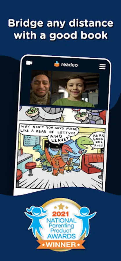 Readeo is great for grandparents, traveling parents, military families, divorced families, and every family in between. Our virtual reading app helps shrink the miles between you and your loved ones as it facilitates meaningful connections and deeper relationships. Children can read from our library of books with another user virtually, or on their own.