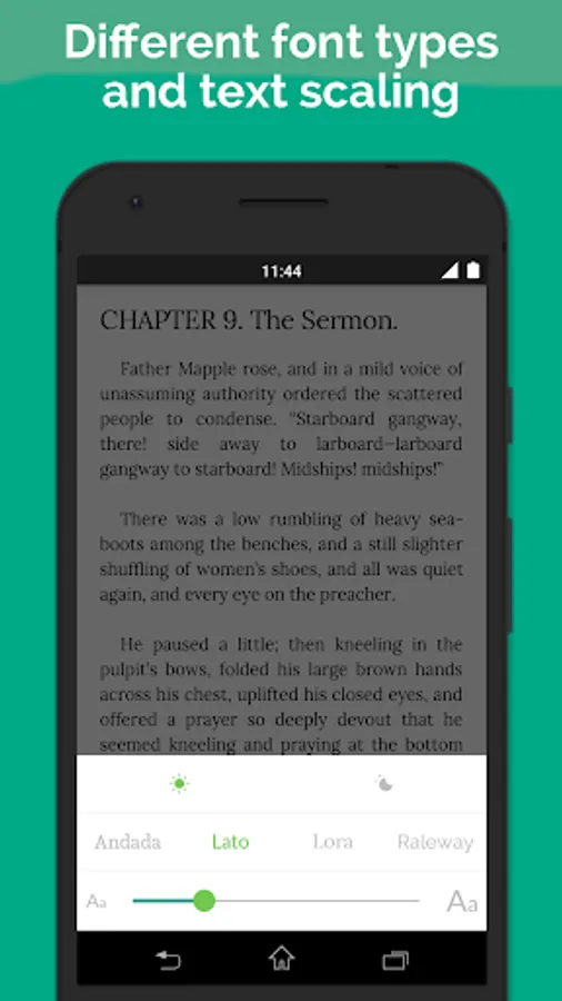 Customize your reading experience by changing the font family and text size, jump around to different chapters and highlight text lines by various color coding to more easily find and read them. Continuous reading: easy navigation and scrolling in both portrait and landscape modes.