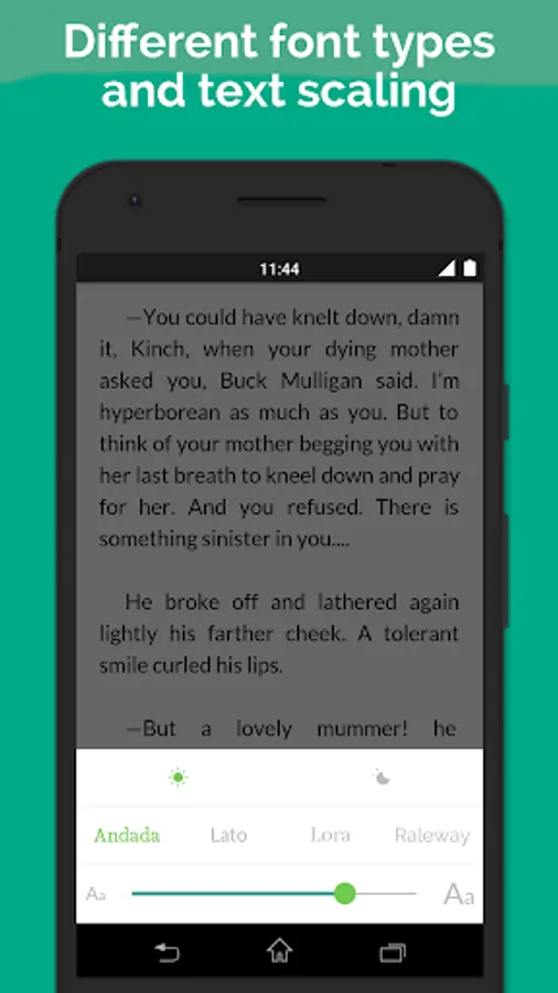 Customize your reading experience by changing the font family and text size, jump around to different chapters and highlight text lines by various color coding to more easily find and read them. Continuous reading: easy navigation and scrolling in both portrait and landscape modes.