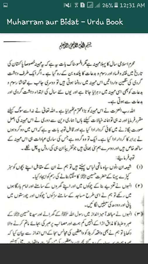 You want to read Urdu Books by free downloading. Many of us prefer to read books in smartphone and PDF. We brought "Muharram aur Bidat" that contains importance of Muharram and role of Hazrat Imam Hussain (a.s) in it.