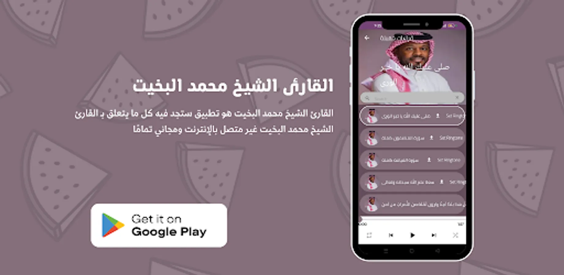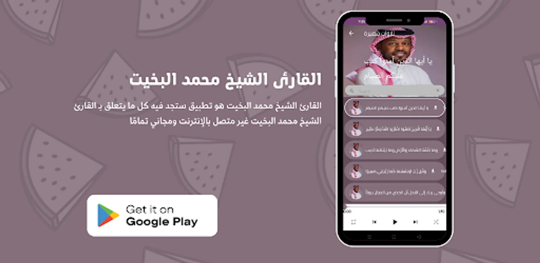 The Sheikh Muhammad Al-Bakhit application allows you to hear the Noble Qur’an with the voice of Muhammad Al-Bakhit, and you can save the Noble Qur’an to your mobile phone easily and conveniently through one application that includes all the surahs of the Noble Qur’an with the voice of Muhammad Al-Bakhit