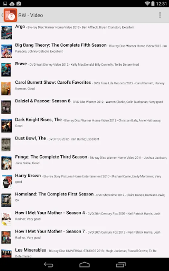 The easiest, fastest way to catalog your video collection, nothing else comes close. Have a large collection? Readerware auto-catalog lets you feed in a list of UPCs or barcode scans. Readerware then does the rest, building your database for you complete with cover art.