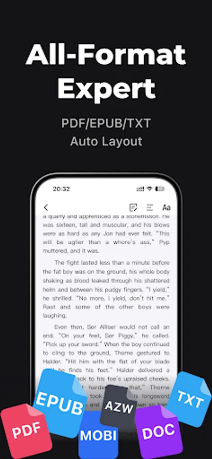 Readify supports all major eBook and document formats, including PDF, EPUB, TXT, MOBI, and AZW. Upload your files and listen immediately with natural AI text-to-speech.