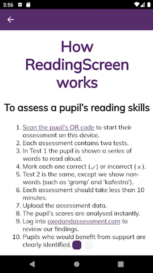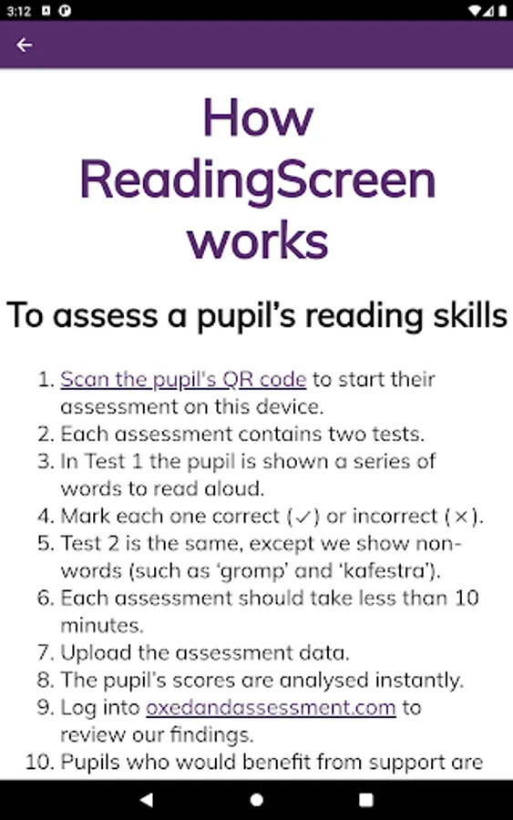 In order to use ReadingScreen a school must register for a free trial on oxedandassessment.com and create a record and QR code for each pupil it plans to assess. The 'How ReadingScreen works' guide gives a handy overview of the process.