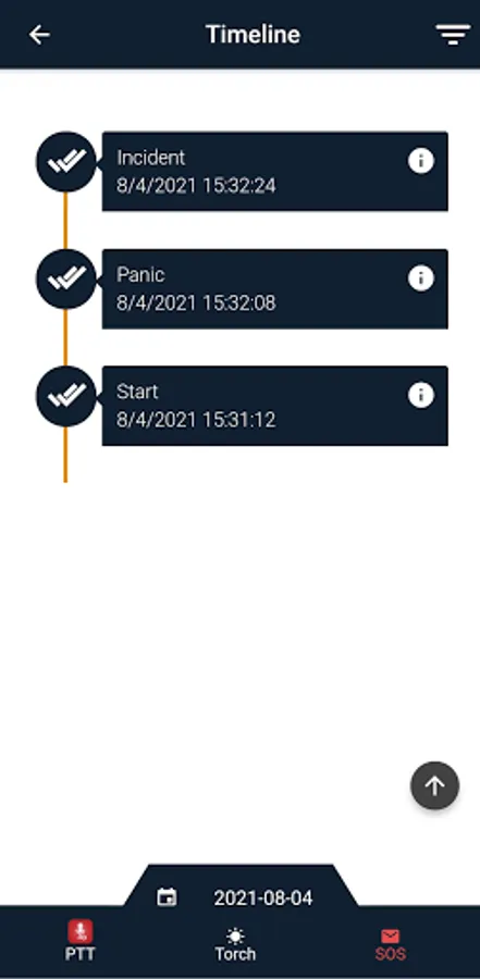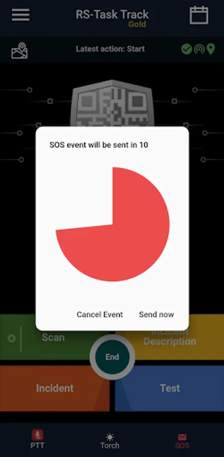 In the app there is also a TEST button and a SOS button. Also the Technician can send pictures and sound recording live to the control room.
