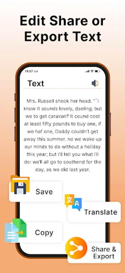 Edit and Share: After scanning, easily edit the recognized text and share it with others via email, messaging apps, or cloud storage.