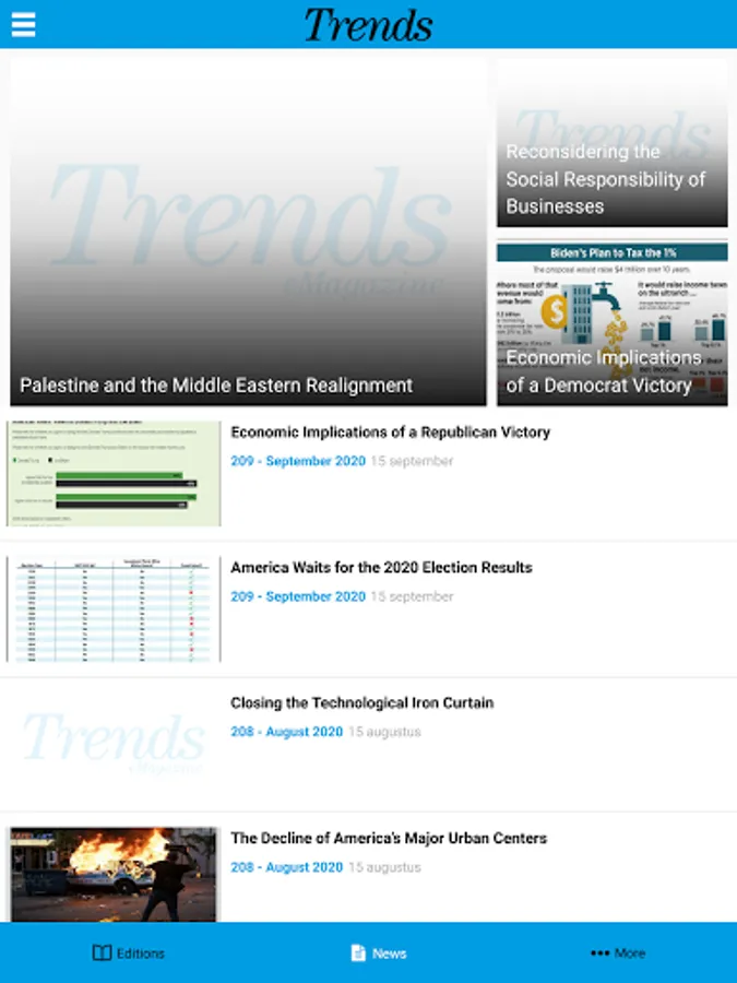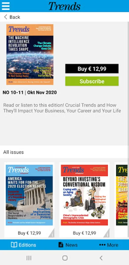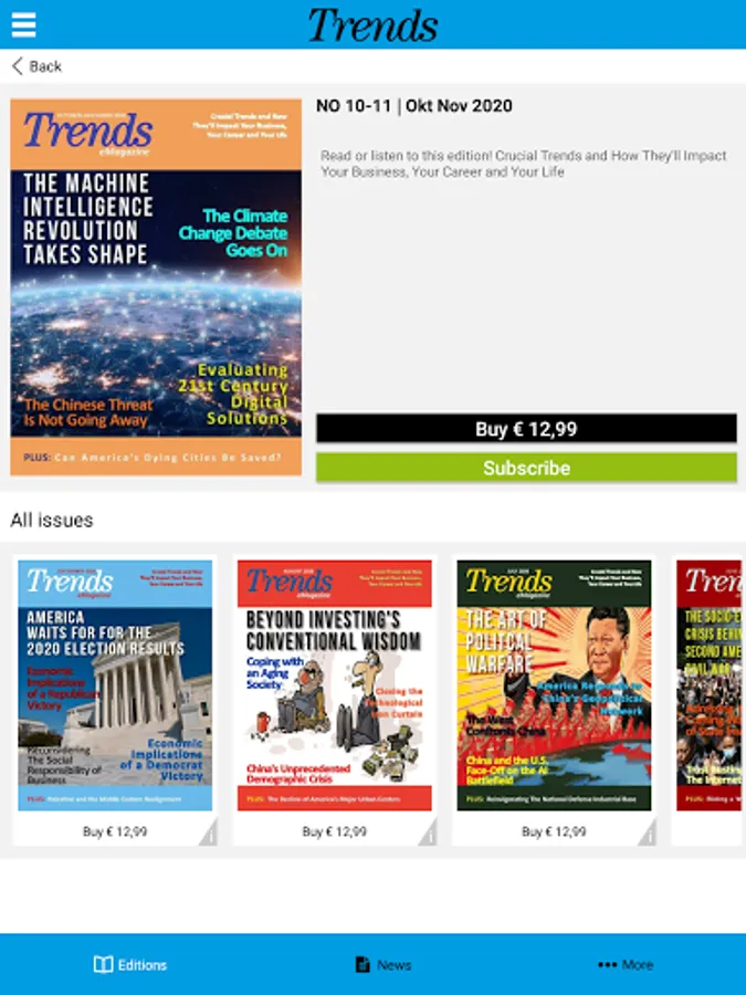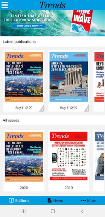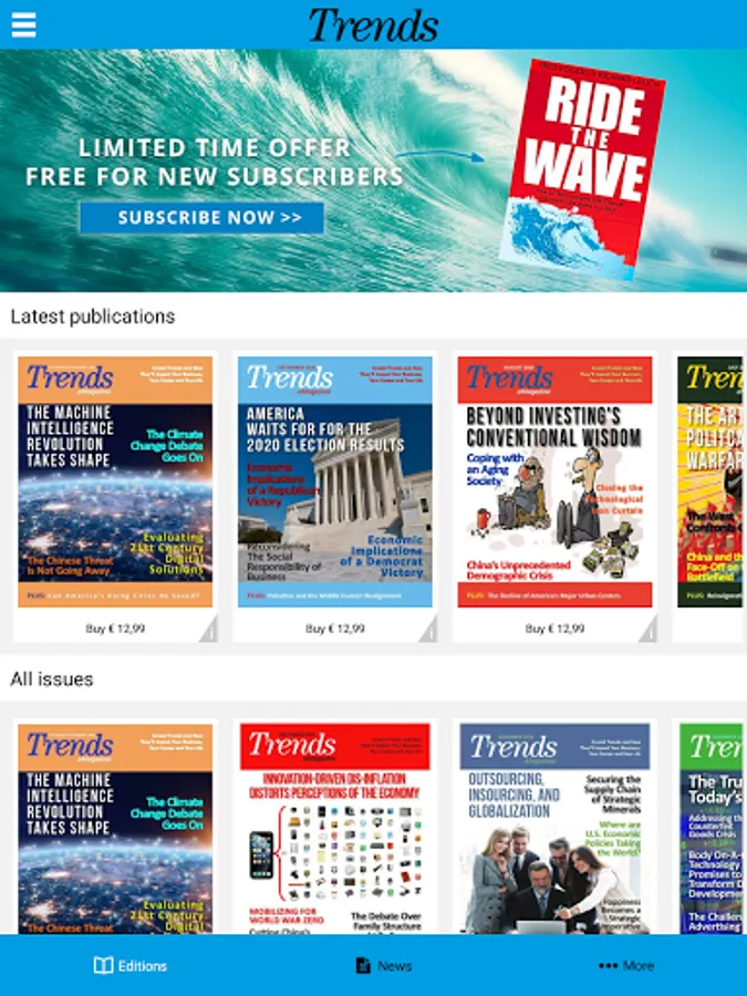 Trends is the best source for business professionals and investors who need to know what's going to happen, why it's going to happen, and how to profit from it. Our team of Harvard MBAs, Fortune 500 Senior Executives, and internationally-known management consultants identifies the crucial demographic, technological and behavioral trends and shows our subscribers how they will shape their lives.