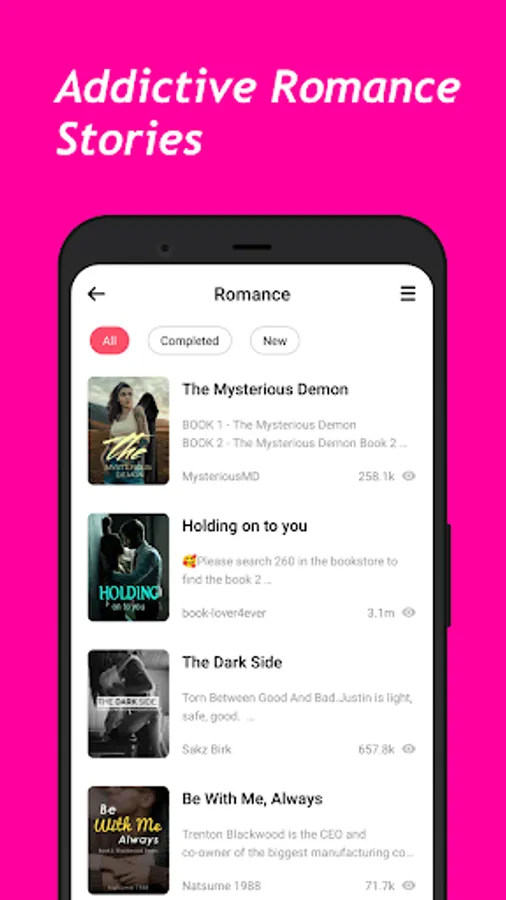 Readoo has different types of genuine stories, including Romance, Fantasy, Fanfiction, Werewolf, and so on. No matter what your interests are, you can find your favorite stories.