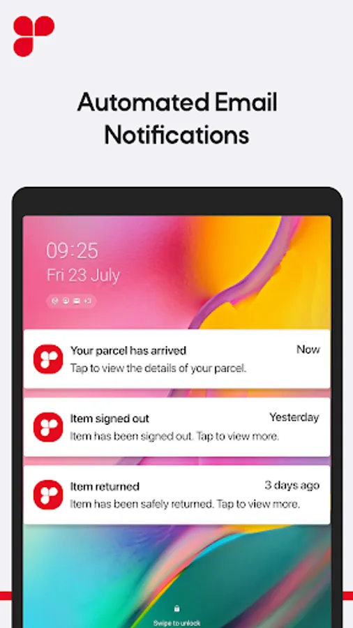 Ensure all deliveries are safely collected. Staff members are required to provide a digital signature when collecting their parcels. The parcel recipient will also receive a confirmation email when the parcel is collected.