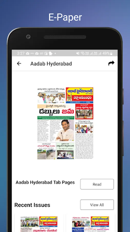 Epaper app to read Aadab Hyderabad Telugu Daily newspaper free of cost!