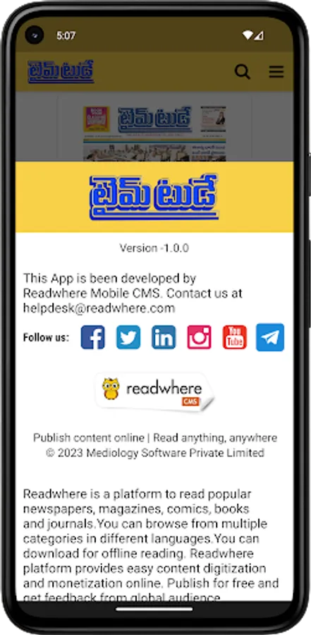 TimeToday is Telugu language daily newspaper in India and the world. TimeToday is published in Andhra Pradesh and Telangana editions by Lara Publication.