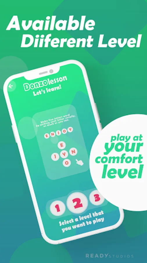 Donzo is a 5 letters word finder game and it's developed by Ready Studios.