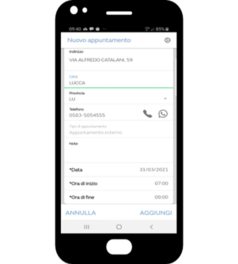 From the SFM APP it will be possible to access the data contained in the CRM while maintaining the same data structures implemented in the central platform, check your tasks, access your appointment calendar and synchronize everything with the typical agendas of our working ecosystem, i.e. those of the Smartphone and e-mail clients normally used.