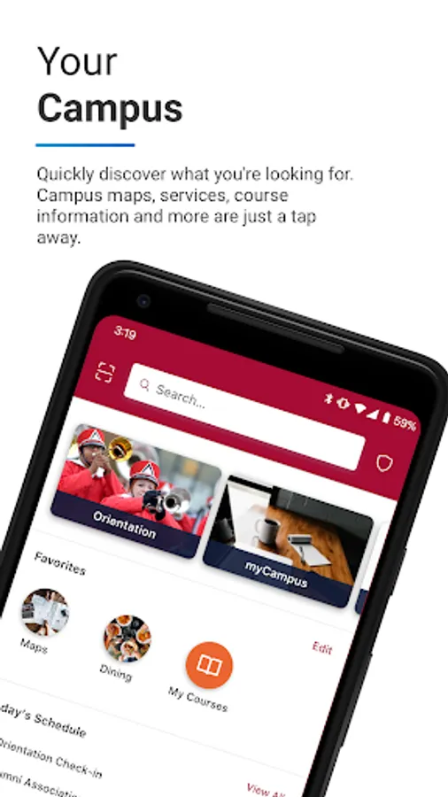 The App brings campus to your fingertips and enables you to connect with the community: Stay on top of your events, classes, and assignments with the built-in calendar function, and get notified of important dates, deadlines & security announcements. Make friends, ask questions, and access campus resources at any time!