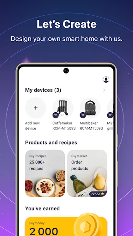 Install the Sky smart devices and services app on your smartphone to control all smart appliances based on the SKY technology from anywhere across the world*. From well-known brands like RED, JVC, Redmond, National. Just download the application once to remotely send commands to all SKY smart devices via the common app interface.