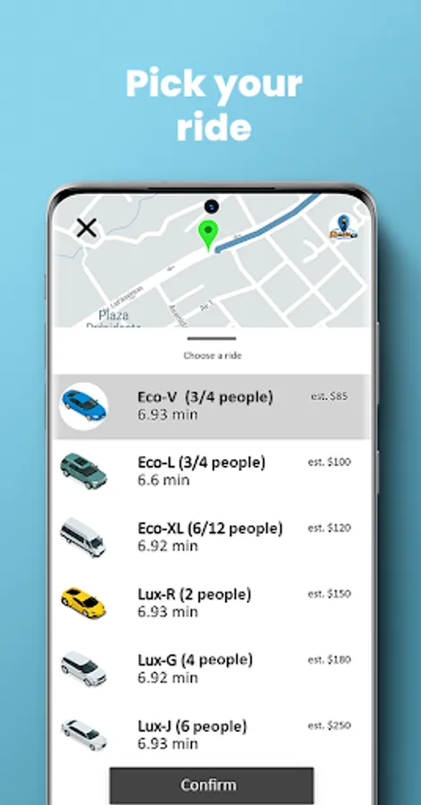 - Once the ride is confirmed, a notification is sent to the passenger showing some information such as vehicle description, ride estimated cost, distance and time.