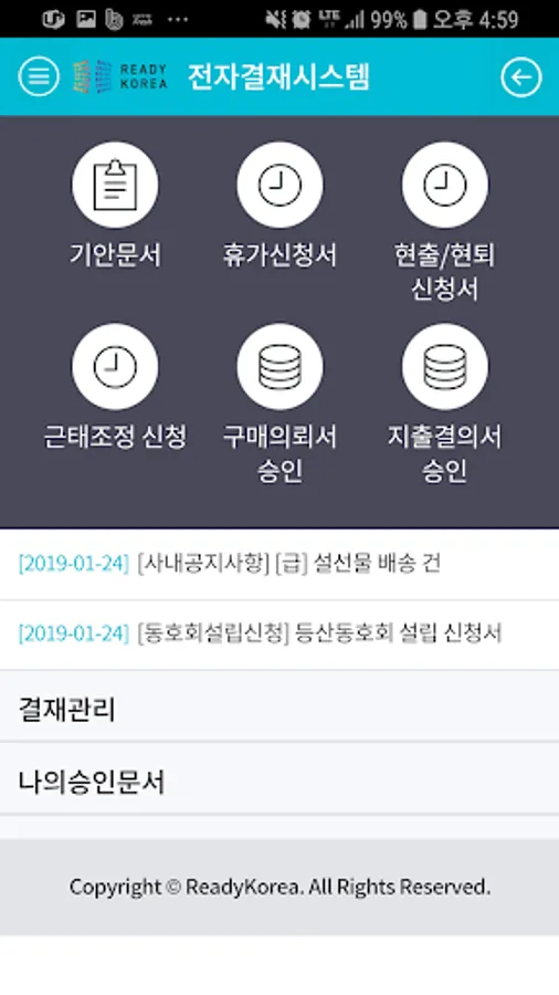 Service providing groupware related functions such as electronic approval / internal bulletin board used by Ready Korea Co., Ltd.
