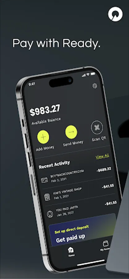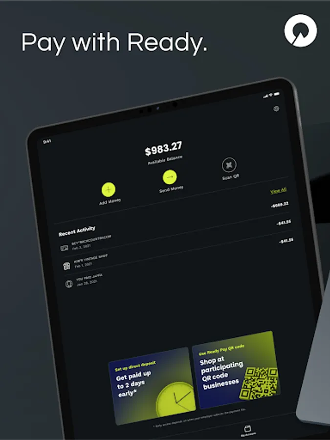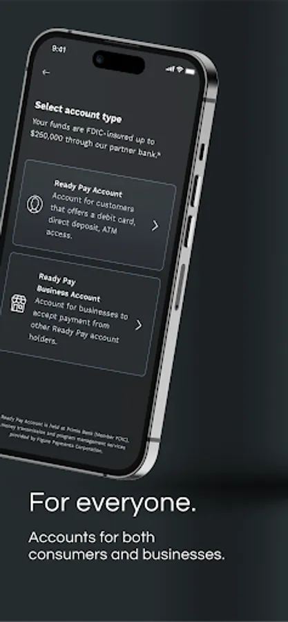 Terms apply. All money transmission services in the Ready Pay app are provided by Figure Payments Corporation. The Ready Pay Visa® Debit Card is issued by Primis Bank (Member FDIC) pursuant to a license from Visa U.S.A. Inc., with program management services provided by Figure Payments Corporation.