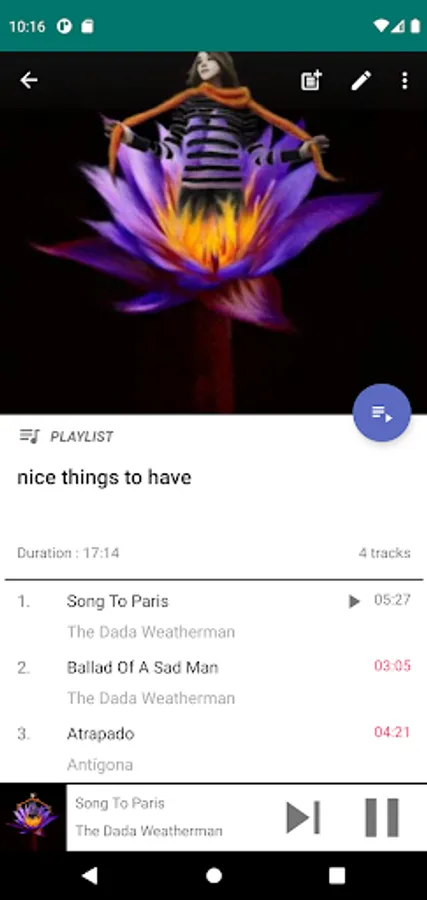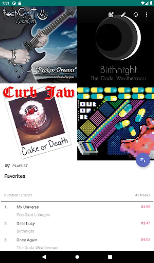 Building playlists has never been easier! A menu option allows you to add the entire contents of an existing playlist to a different one. Or you can long press individual songs and quickly add them to a playlist.