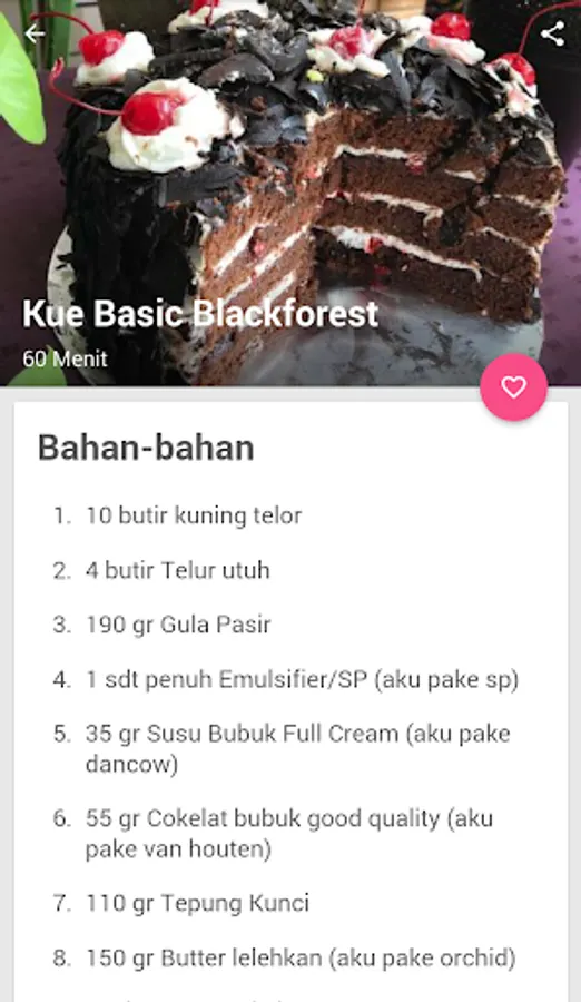 If at any time there are family or distant relatives who want to go home you can make your own cake and bakery with recipe guides in this app. You can try making sponge cake, cake, brownies, nastar, and various cakes suitable for banquets .