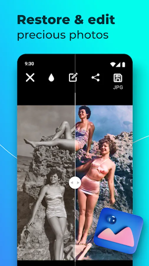 You can choose photos that are totally grayscale, sepia-toned, or partially decolored, and our AI-powered technology will colorize photos from scratch. But that's not all! Colorize Photos - AI Photo Enhancer also has the power to restore old, damaged, and low-quality images, making them look brand new. 📷