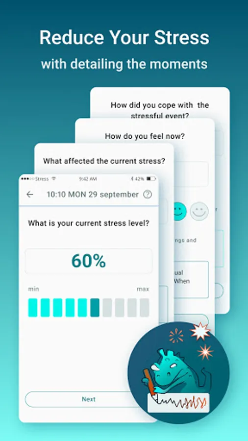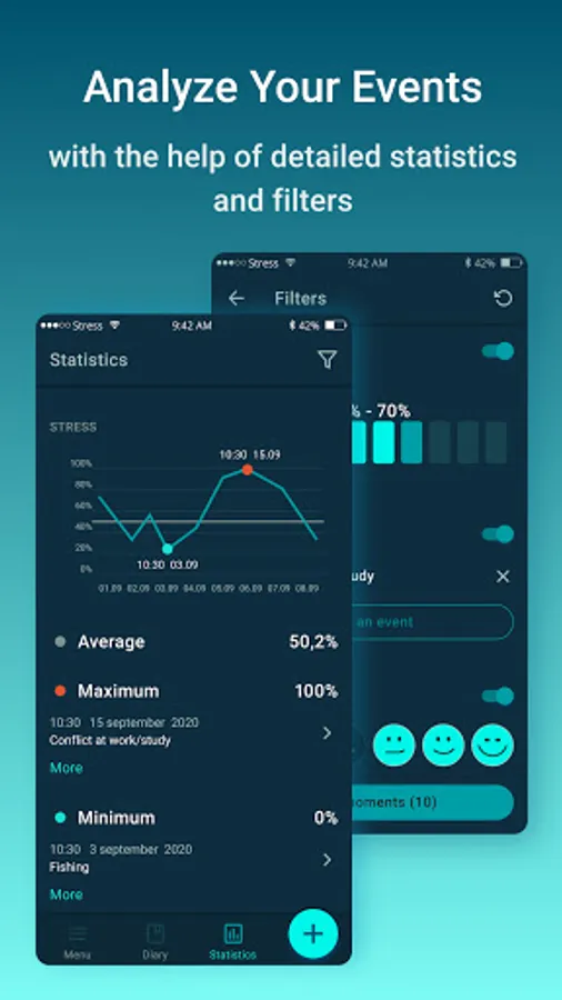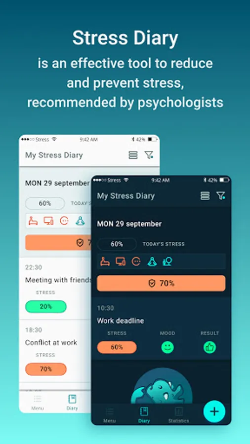 Stress and anxiety are everywhere: traffic jams, deadlines, family conflicts and unpleasant news. Nowadays people are not active, spend a lot of time on-line, so stressful situations have a huge negative influence on our health. We hope that My Stress Diary app will help you control anxiety and improve your mental health, become more mindfulness, productive and satisfied with yourself and the world around you!