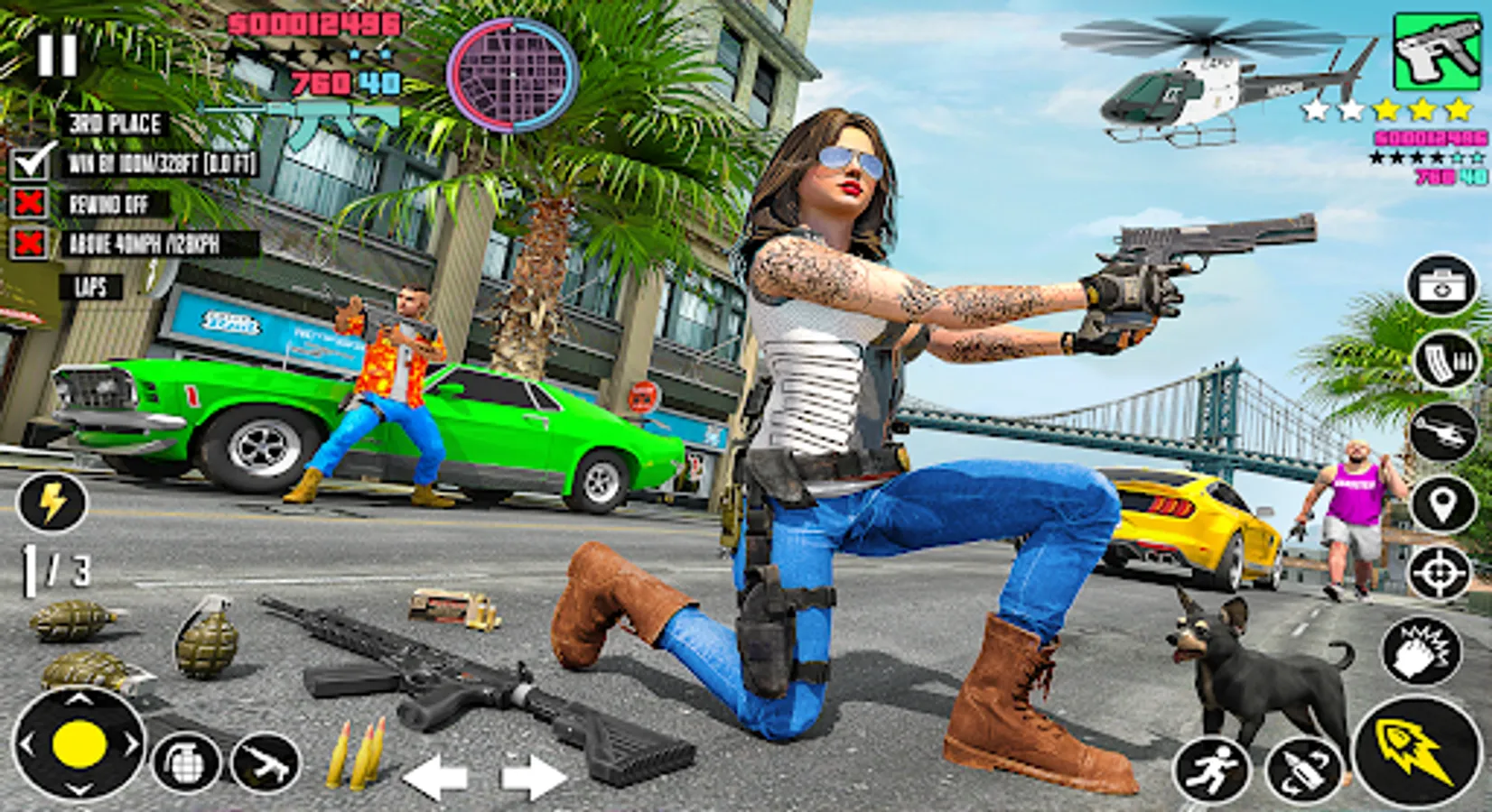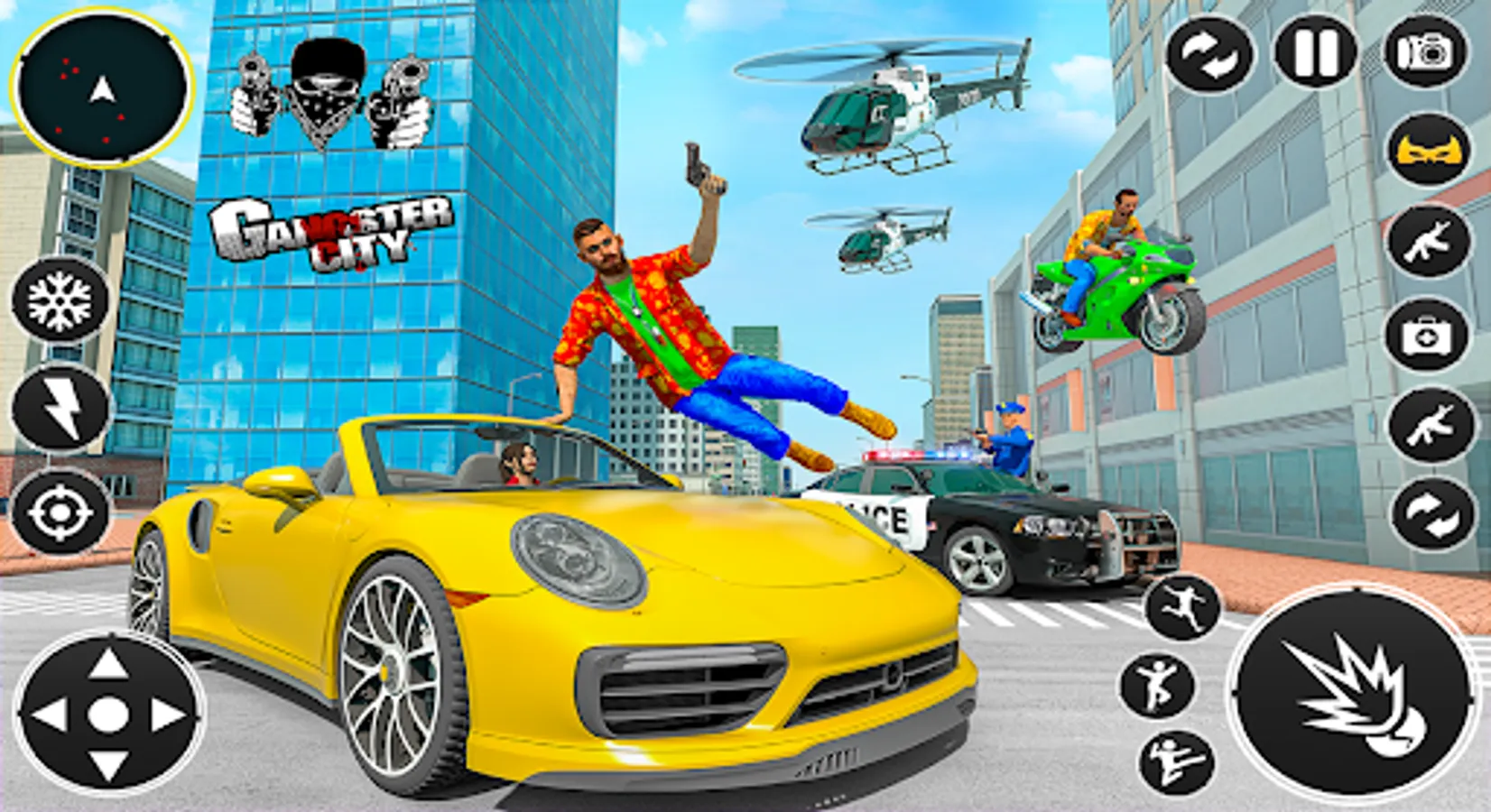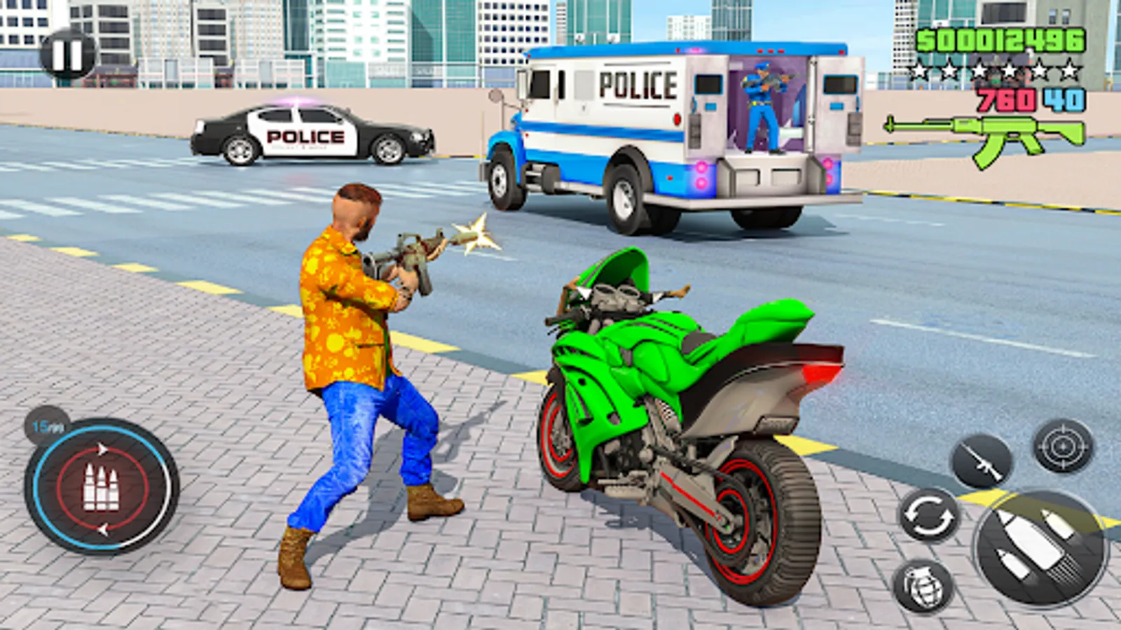 Here first of all select the mode and play this grand gangster crime police chase game against the real Gangster games. You are on the police chase car crash simulator in the Vegas crime simulator games. Police chase car games have the well experience to snatch and steal cars from the citizens in police mobile games. Multiple modes used in the police gangster games but one mode for the police chase survival mission so that you will be able to save your friend in Crime Simulator Gangster Games. Whole the missions in the last mode in which you can shoot as a real gangster hero around the gangster chase simulator in police crime game. Addition of some quest in the auto war crime mafia games and multiple world player enjoy these police chase crime games. You use the grand helicopter to save the innocent citizens lives from the police chase gangster crime simulator games.